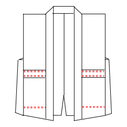 | 衿、(ポケット上部+底部)、背中心 |