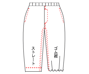 ※パンツ裾(ゴム・紐)の場合は、裾のステッチはありません。