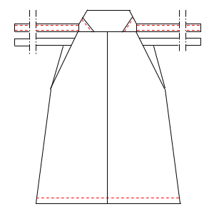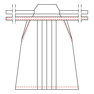 前紐、後紐、裾、笹ひだ、股下、股上、前開きファスナー部分