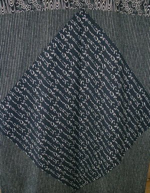![]() 平面の中心には文字柄生地を 貼り付け縫っています |