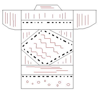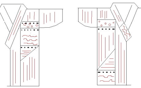 ![]() 向かって左の襟先(裏面) |
