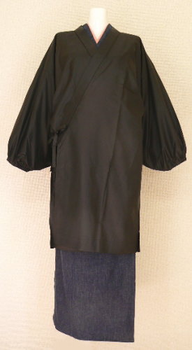撥水化工を施した、シャンブレー感のあるソフトで上品な風合いの「撥水みずや着」です。生地は薄く、とても軽いので、ロング丈のみずや着でも軽快です。雨の日のお出かけや 水まわり仕事をされる際におすすめです。 |